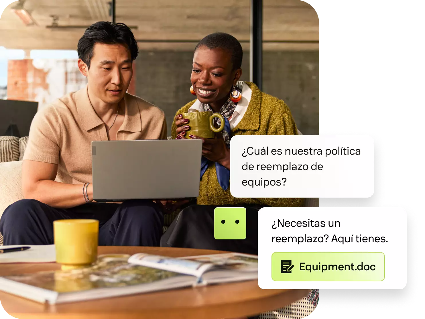 Los agentes IA gestionan solicitudes internas rutinarias (como acceder al sistema, buscar políticas y pedir ayuda al área de TI), siempre cumpliendo las normas estrictas sobre la privacidad de datos y demás disposiciones. Los copilotos ayudan con los procedimientos y la documentación, gracias a lo cual los equipos pueden mantener su nivel de eficiencia y tener todo a mano en caso de una auditoría.