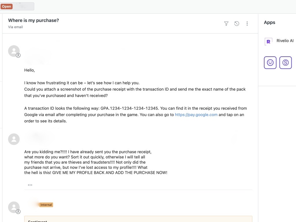 • immediate context for support agents who may need to review the ticket in the future.