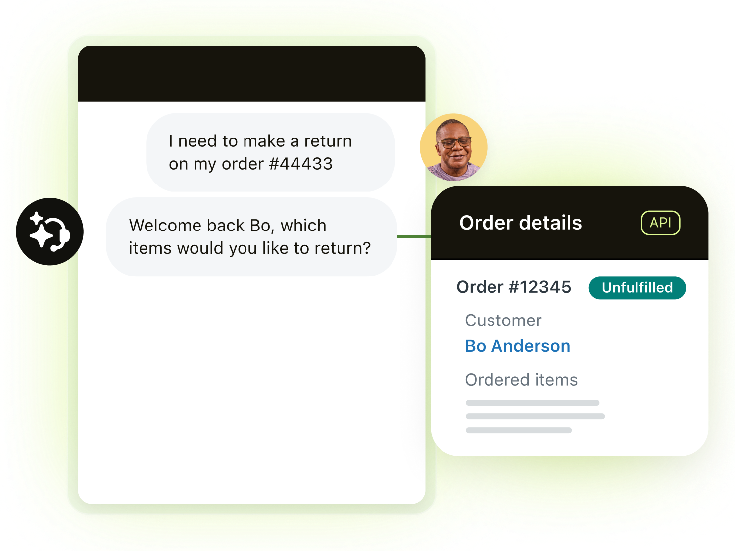 Zendesk se conecta sin problemas con tus sistemas backend, lo que permite a los agentes abordar flujos de trabajo complejos, incluso cuando requieren acción fuera de Zendesk.